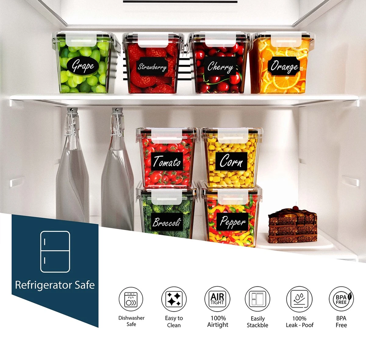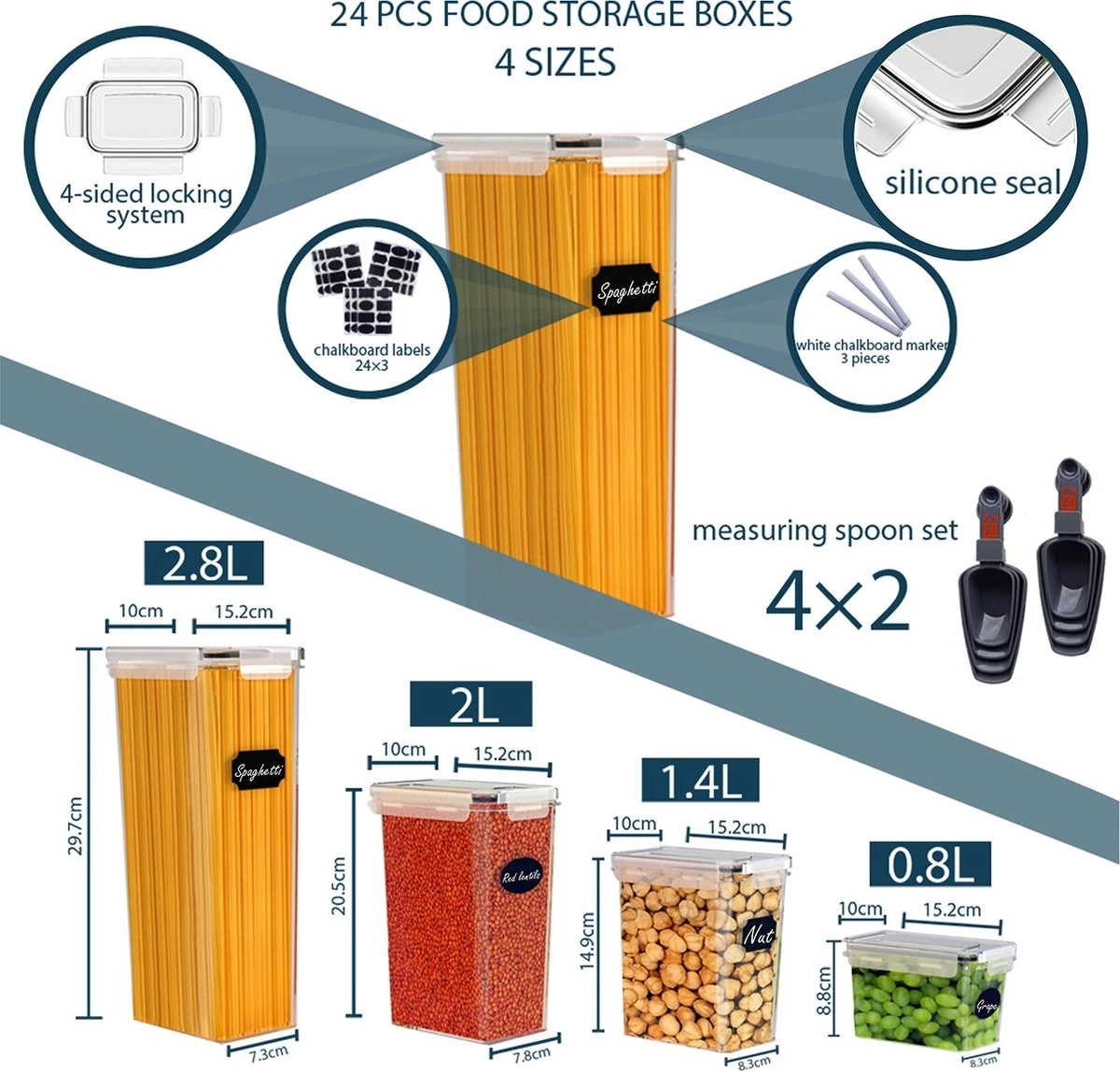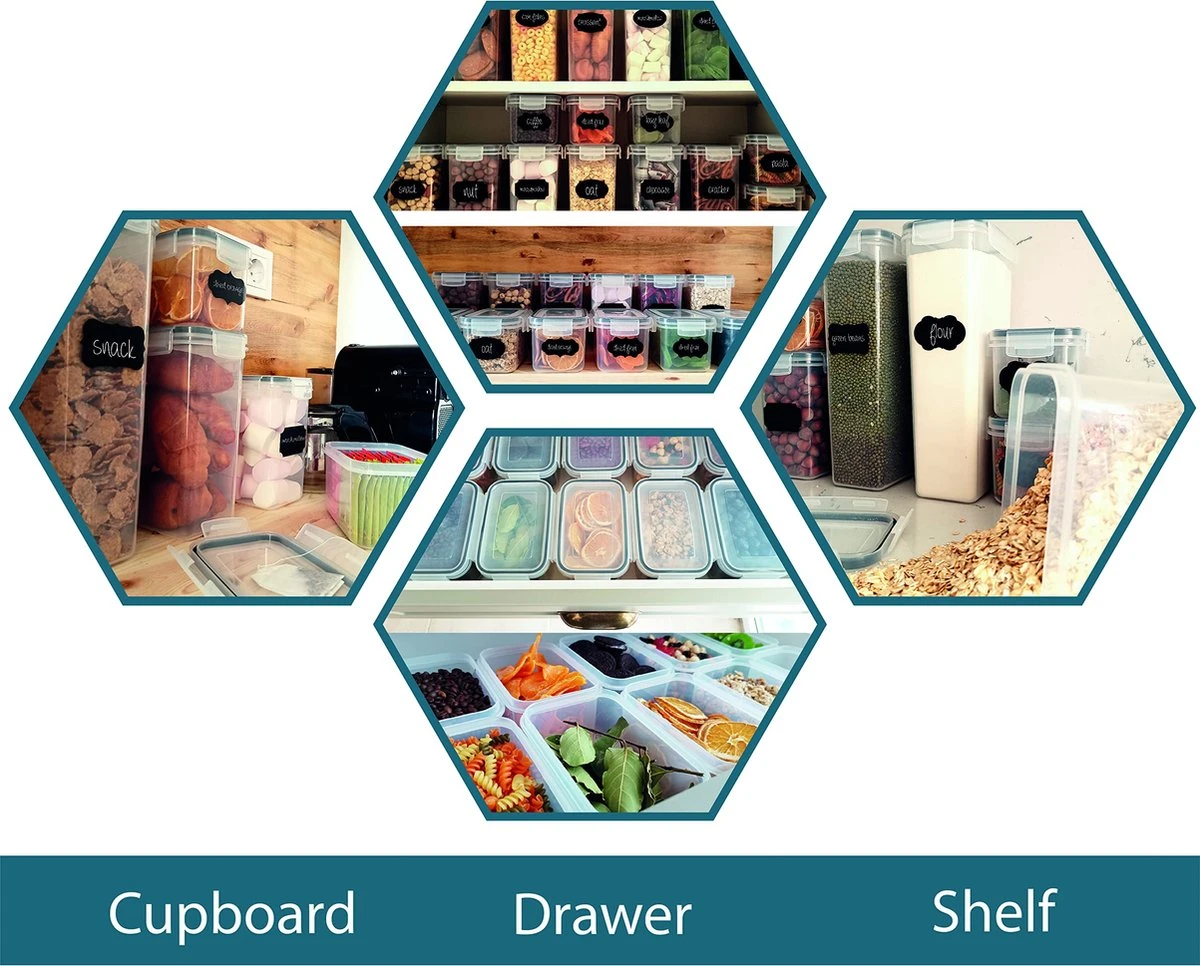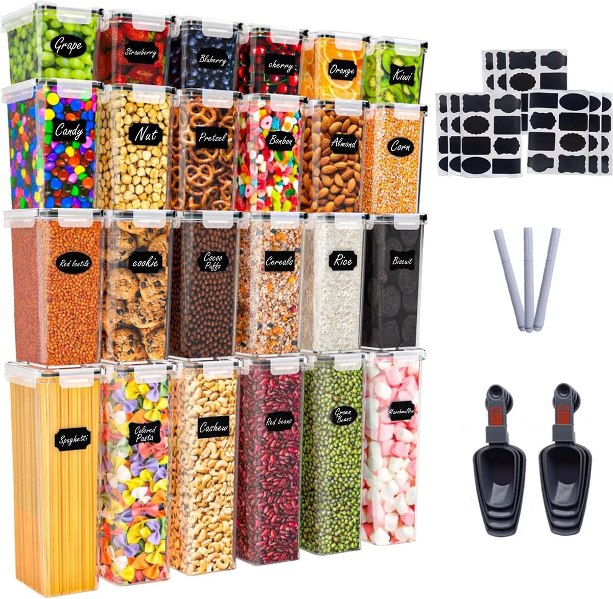 Empyrea Set Van 24 Luchtdichte Vershouddozen, Voorraad Bussen Opslag En Organisatie, Keuken En Voedselcontainer, Voorraadpotten Van Kunststof, BPA-vrij, 72 Etiketten, 3 Markers En 8 Lepels Meegeleverd | Keuken Organizer Voorraadcontainers