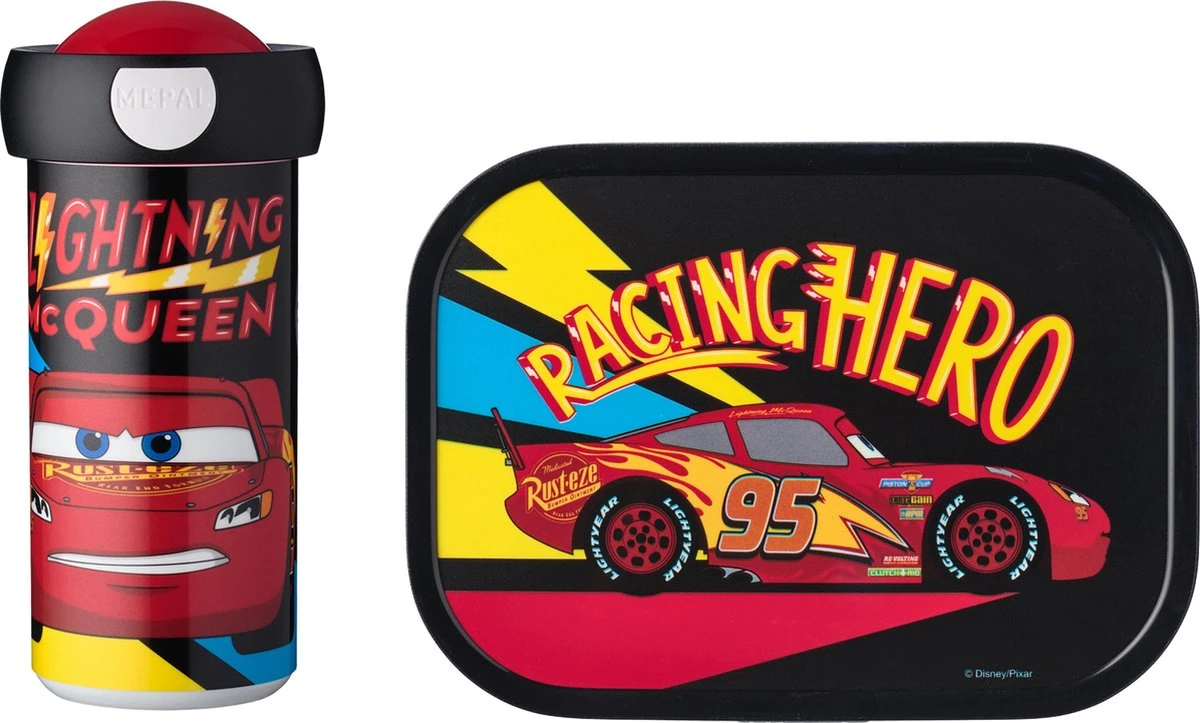 Helemaal klaar voor een nieuwe schooldag met de lunchset met Cars go print van Mepal. Deze handige set bestaat uit een pop-up drinkfles en een lunchbox midi, voorzien van bento box en vorkje. De drinkfles voor kinderen is ideaal; druk en drink, dat is het principe. De fles is gegarandeerd lekvrij en ook makkelijk door kleine kinderhandjes te gebruiken. De bento lunchbox biedt ruimte aan maximaal 4 boterhammen en wordt inclusief bentoboxje en fruitvorkje geleverd. Zo wordt variatie rond de lunch écht kinderspel! Verras jouw zoon of dochter bijvoorbeeld eens met wat snoeptomaatjes tijdens de lunch of geef ze eens een stukje kaas of worst mee. De mogelijkheden worden bijna eindeloos! Dat wordt iedere dag een beetje extra genieten. Extra fijn voor papa en mama: zowel de pop-up drinkfles als de broodtrommel voor kinderen mogen gewoon in de vaatwasser.