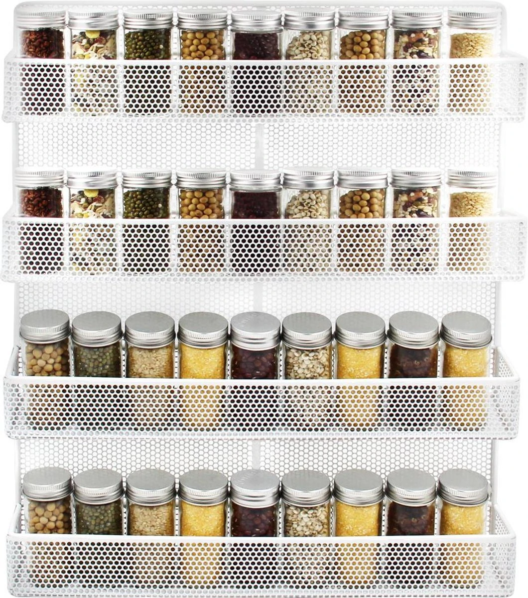 Hang hem aan de muur of verwerk ‘m in een keukenkastje. Zo wordt het een dressing voor iedere keukengoeroe. Het ziet er leuk uit en geeft ruimte voor de smalle potjes en ook die een bolle onderkant hebben.